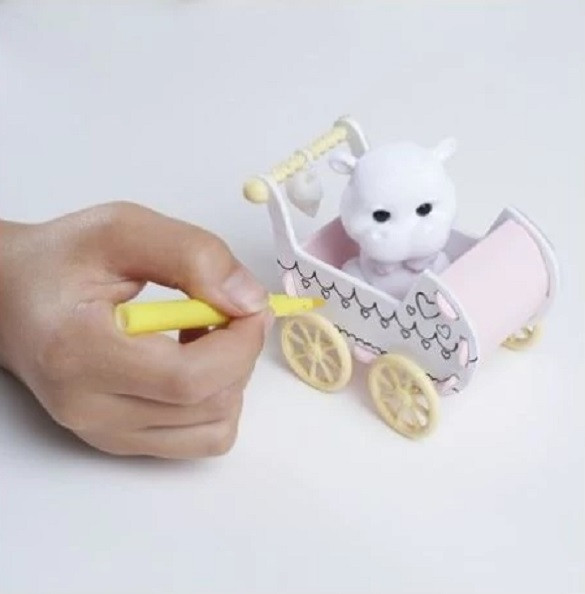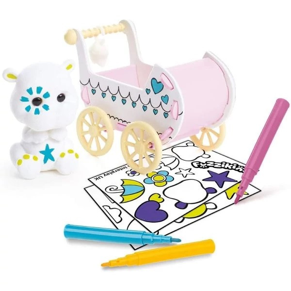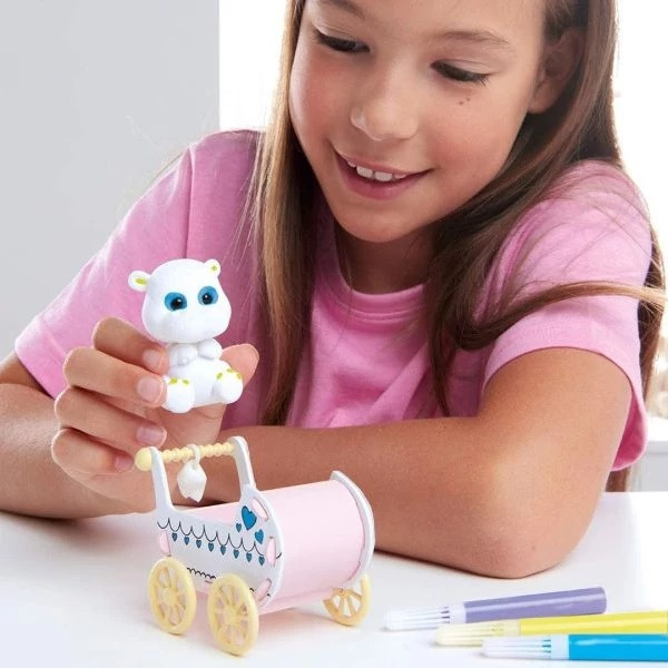 A dobozban található plüss állatkát és babakocsit te díszítheted ki, ahogyan csak szeretnéd! Használd a mellékelt filceket és kiegészítőket, hogy a kis víziló saját személyiséget kapjon. Az egyedi mintáknak és színeknek csak a te képzeleted szab határt!
