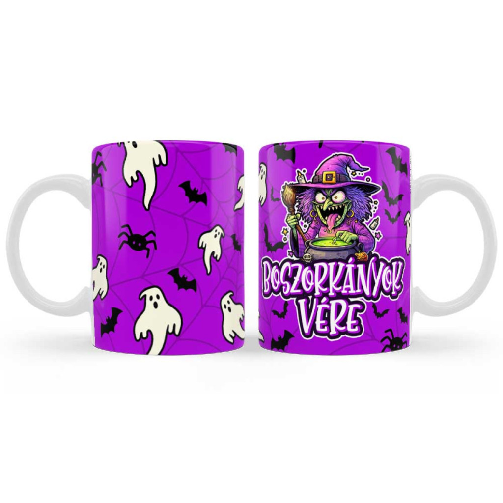 Készülj fel a Halloweenre ezzel a hátborzongató boszorkányos bögrével, amely tökéletes a 'Boszorkányok vére' felszolgálásához!