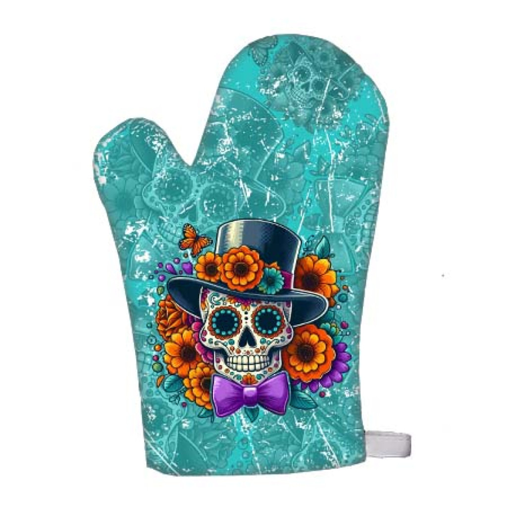 Dobd fel a konyhai teendőket ezzel az egyedi, cukorkoponya mintás Halloween-i főzőkesztyűvel! Ez a stílusos és praktikus főzőkesztyű nemcsak védi a kezedet a forró edényektől, hanem egyedi megjelenésével a konyhád igazi dísze lehet a Halloween-i időszakban.